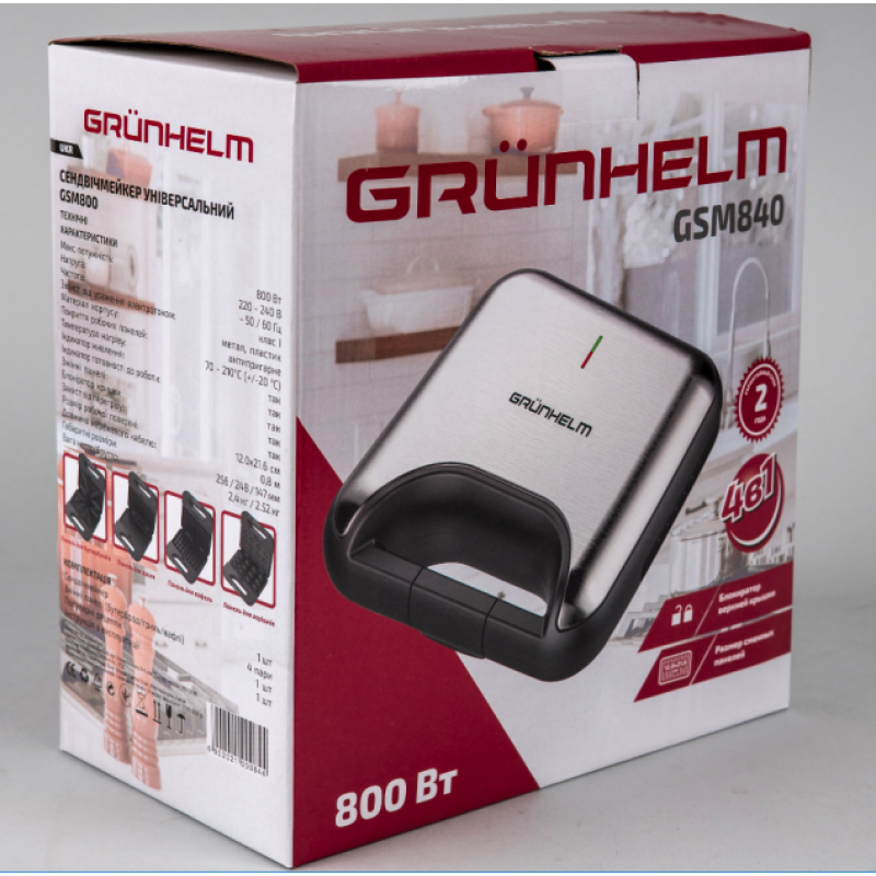 | Комплектация | формы для сэндвичей; вафельница (венские вафли); пластина гриль (рифленая); форма для орешков |