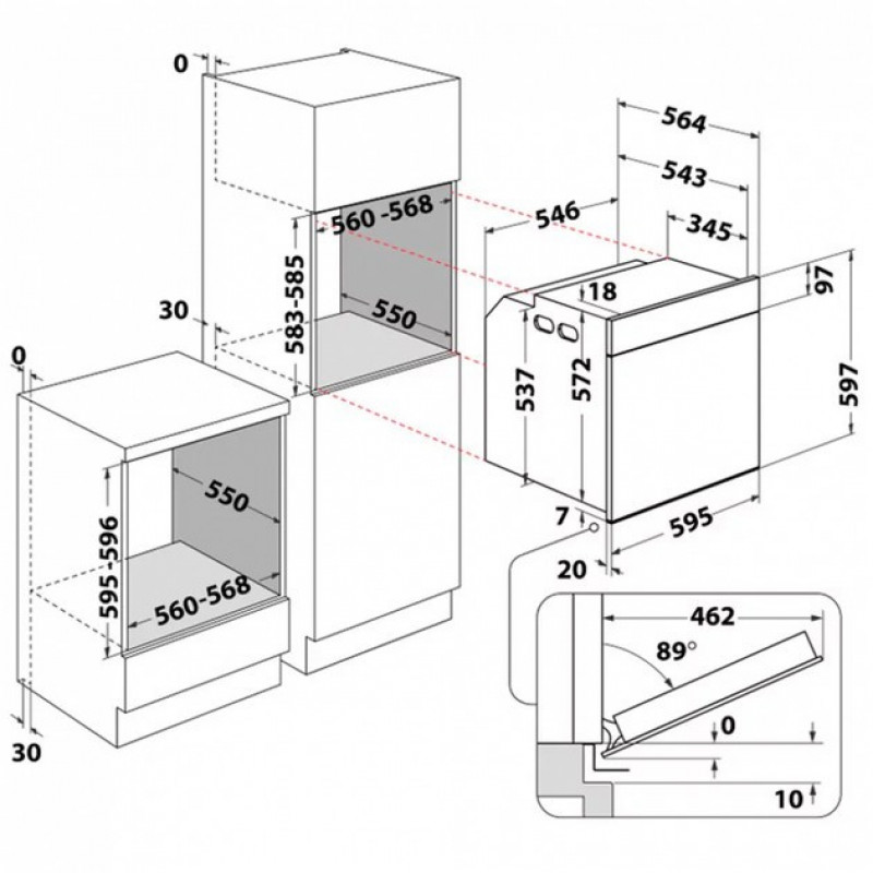 | Размеры для встраивания (ВхШхГ) | 595x560x550 мм |