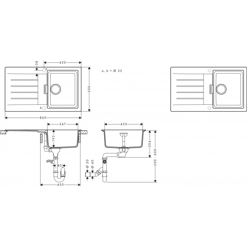 | Диаметр отверстия под смеситель | 35 мм |