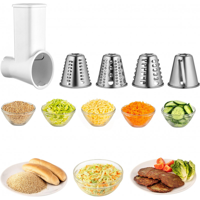 | Аксессуары | венчик для взбивания; биттер для перемешивания; силиконовый биттер; насадка 4 шт. шинковки; бутылка-шейкер |