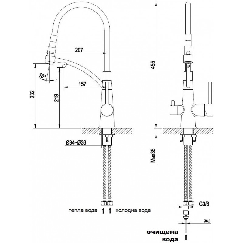 | Высота смесителя | 455 мм |