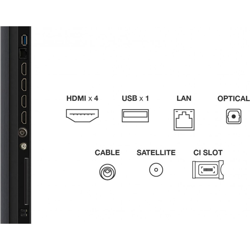 | Цифровой тюнер | DVB-T2 (эфирное); DVB-C (кабельное); DVB-S (спутниковое); DVB-S2 (спутниковое) |