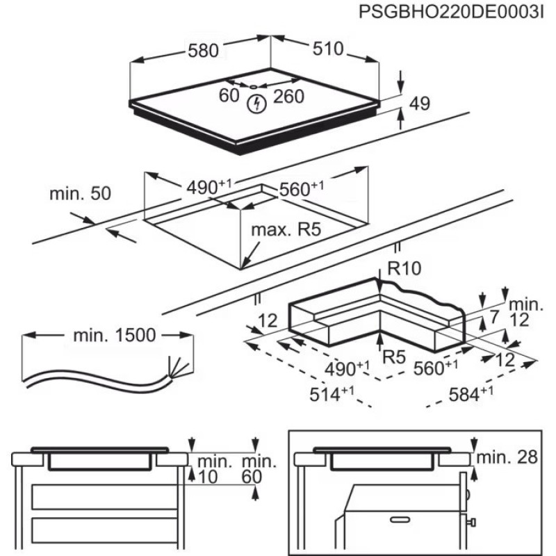 | Размеры для встраивания (ШхГ) | 560х490 мм |