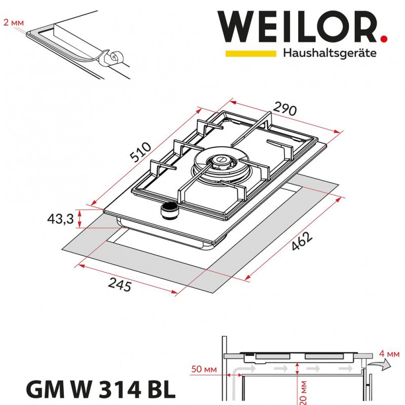 | Размеры для встраивания (ШхГ) | 245x462 мм |