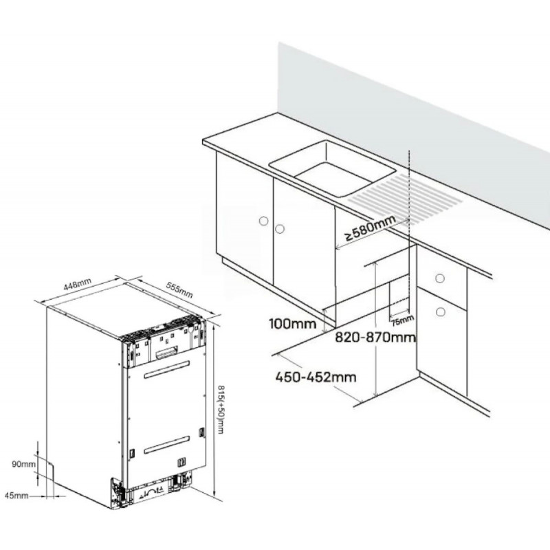 | Ширина для встраивания | 450 мм |