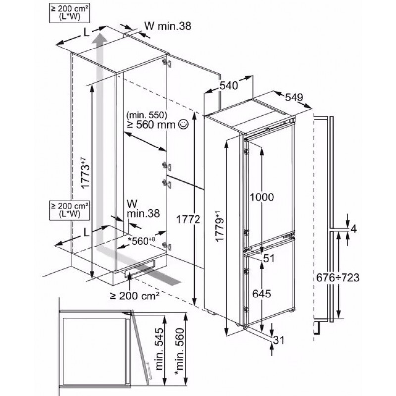Размеры для встраивания (ВхШхГ) | 1773x560x560 мм |