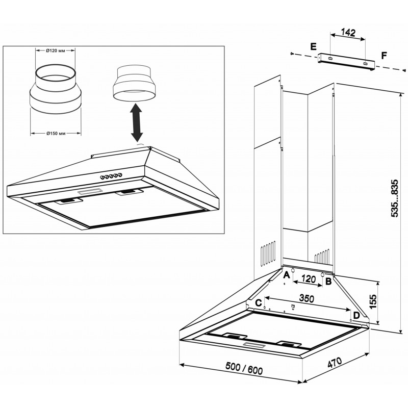 | Диаметр воздуховода | 150 мм |