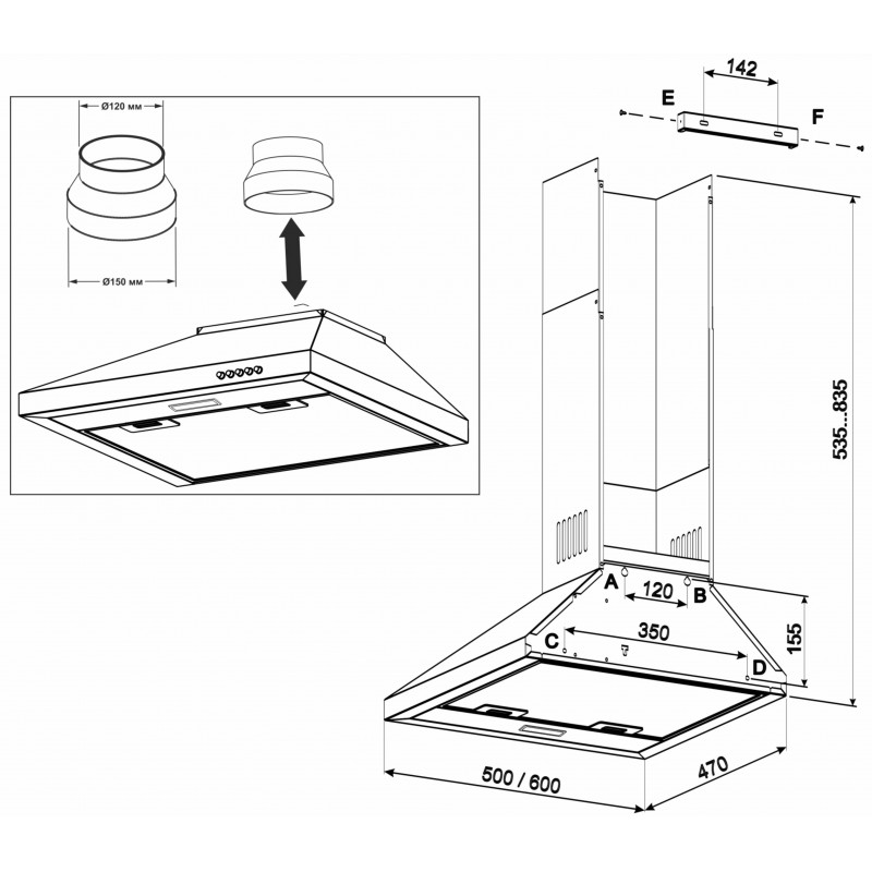 | Диаметр воздуховода | 150 мм |